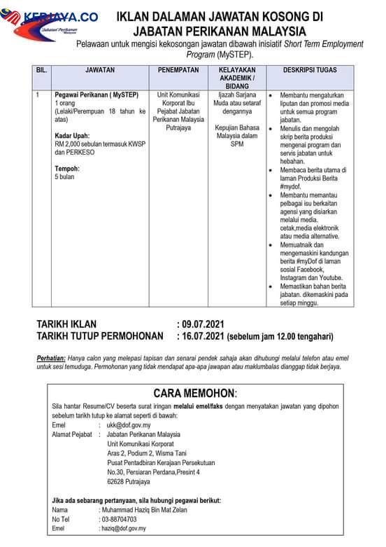Jawatan Kosong Di Jabatan Perikanan Malaysia Dof Jobcari Com Jawatan Kosong Terkini